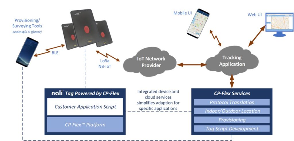 The solution supports a variety of system implementations supporting both cloud and enterprise-based deployments. Systems developed using the Nali-100 tag and related services can work with any preferred LoRaWAN network.